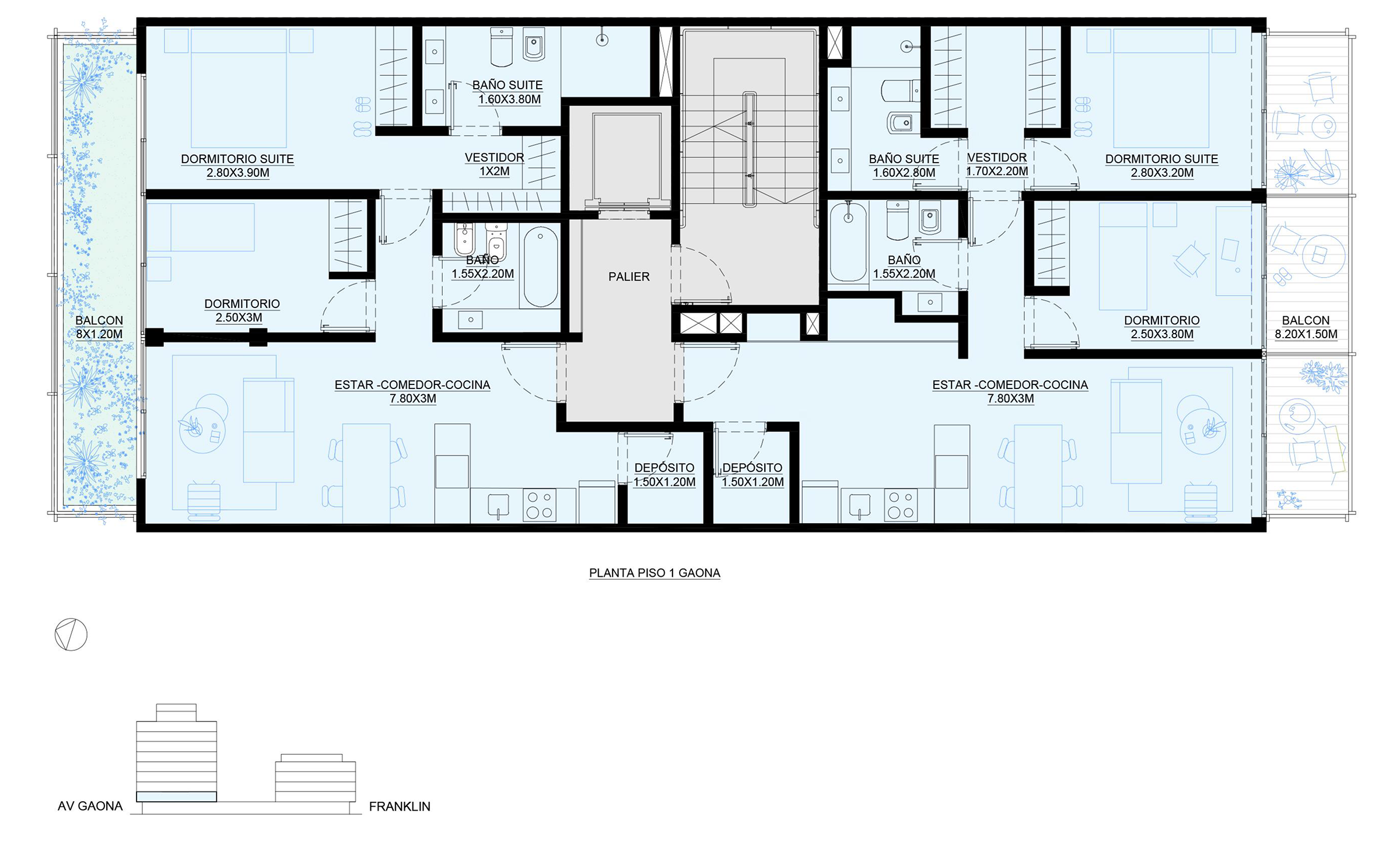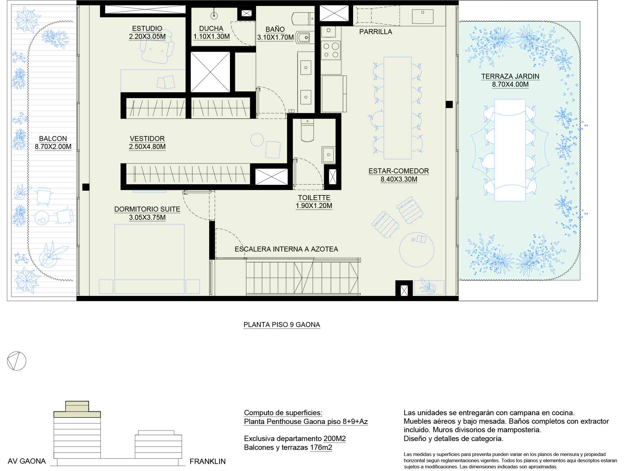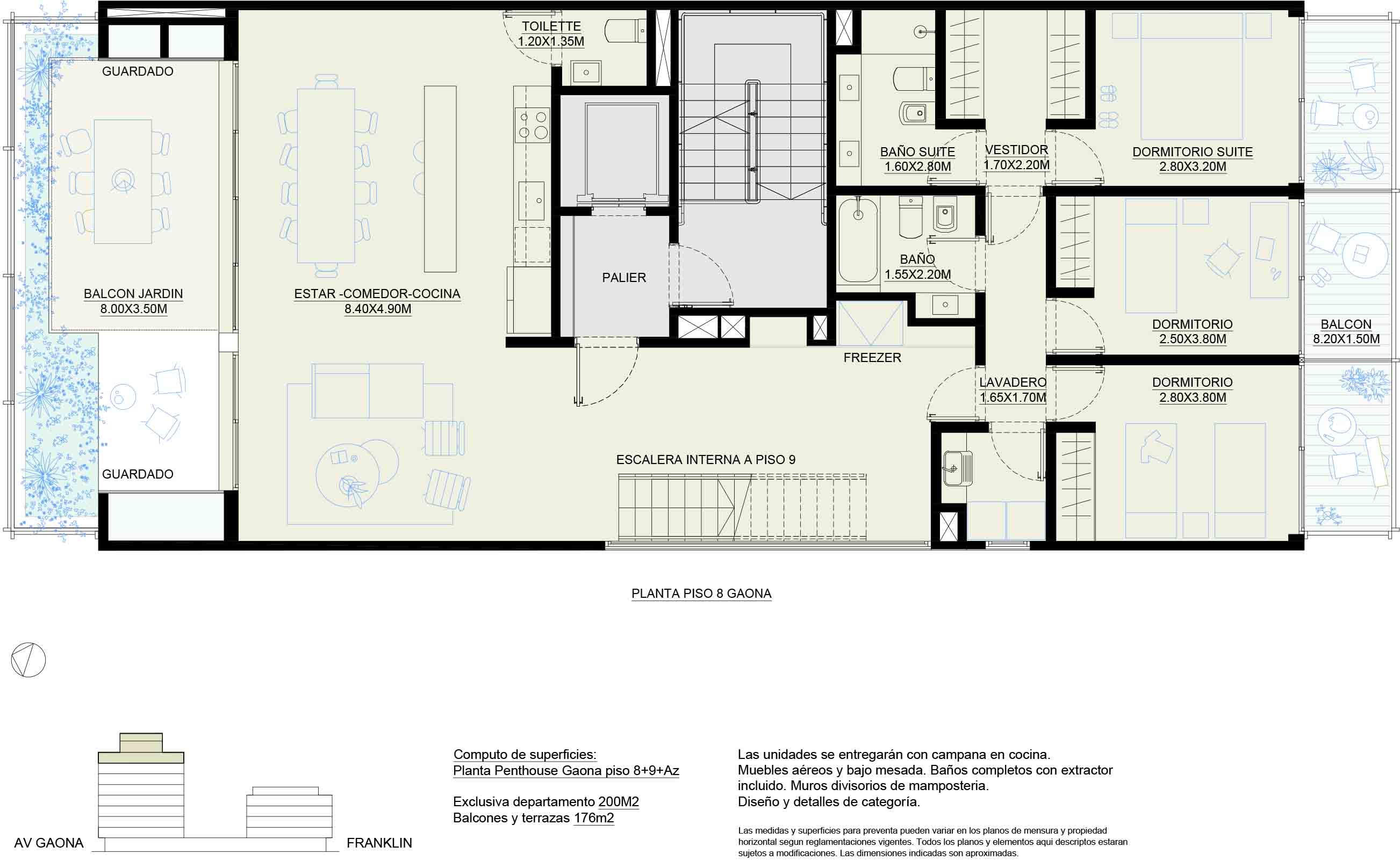 Planta Penthouse Gaona piso 8 + piso 9 +Azotea