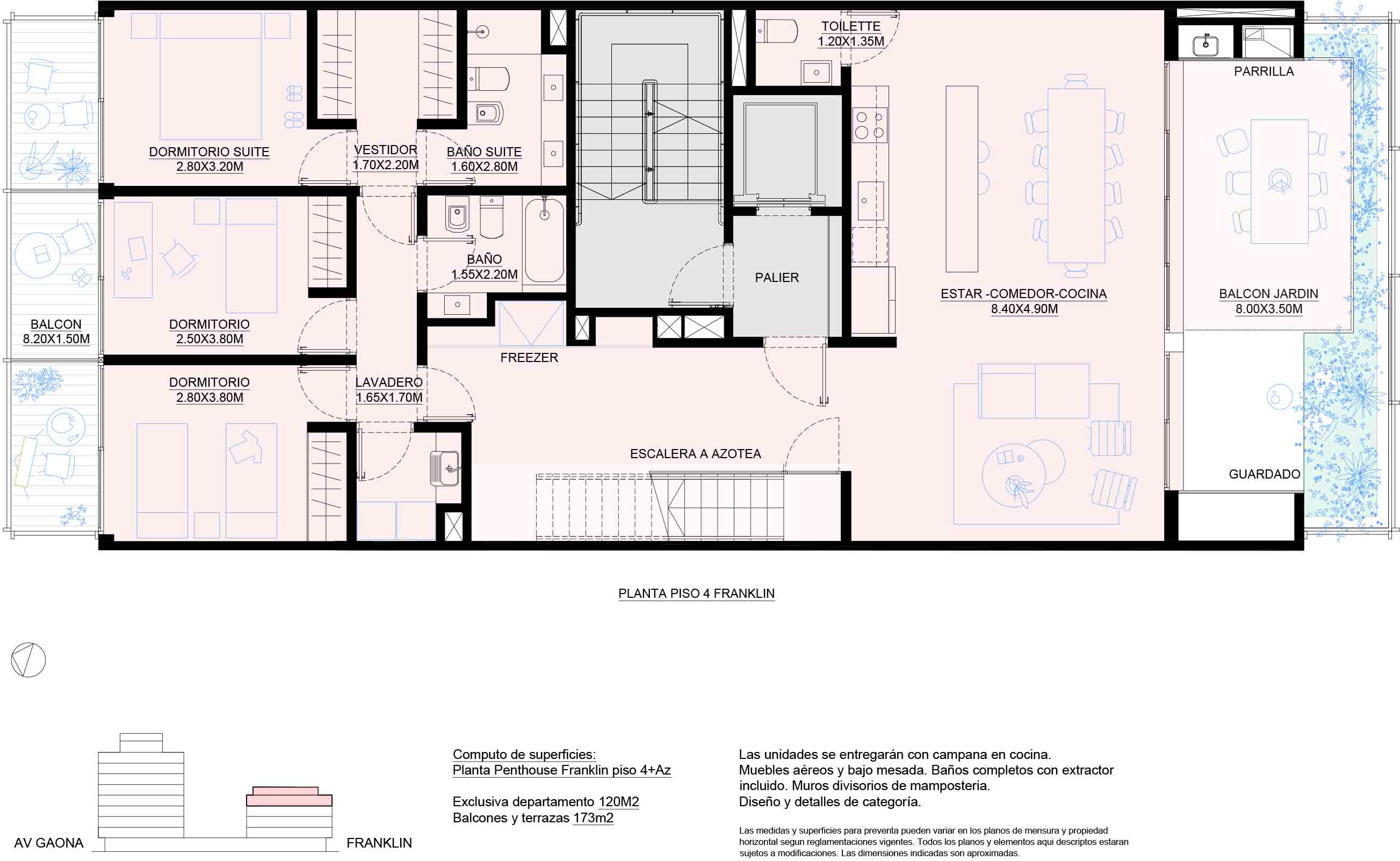 Planta Franklin Gaona piso 4 + Azotea